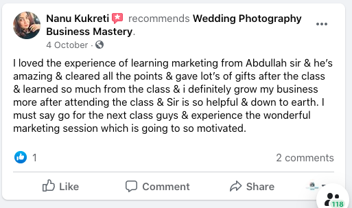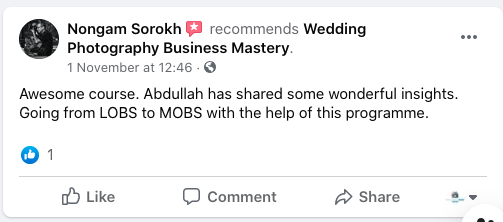 A Photographer and an Entrepreneur by heart, Abdullah now helps a lot of Job Professionals, Freelancer Photographers , Cinematographer or everyone who is looking to start and venture into Wedding Photography Business.